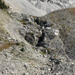 Daffern Vol. 1 4th Edition – #47A.  Becomes steeper with lots of rocks underfoot after about 3.75km, but glacier can be seen from there.  People okay with the rocky trail can go about 1 km further to the toe of the glacier which has greatly receded. Tarn that used to be close by (around the corner from the terminal moraine, not the small one at the base of the glacier) is no longer there – must have been filled in with rockfall during the 2013 flood.